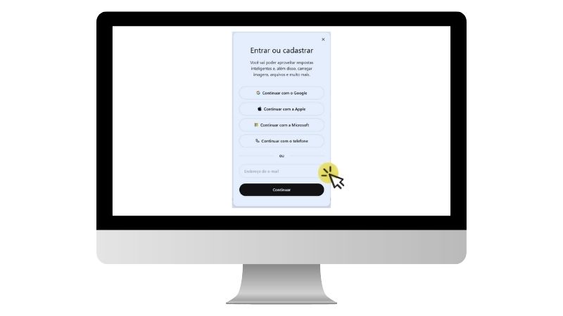 Não se preocupe: é bem simples. Você entra com o mesmo e‑mail e a mesma senha que criou aqui e já pode usar o ChatGPT em qualquer aparelho, sem medo de “fazer errado”. Você escolhe o que for mais confortável: computador, celular ou tablet.